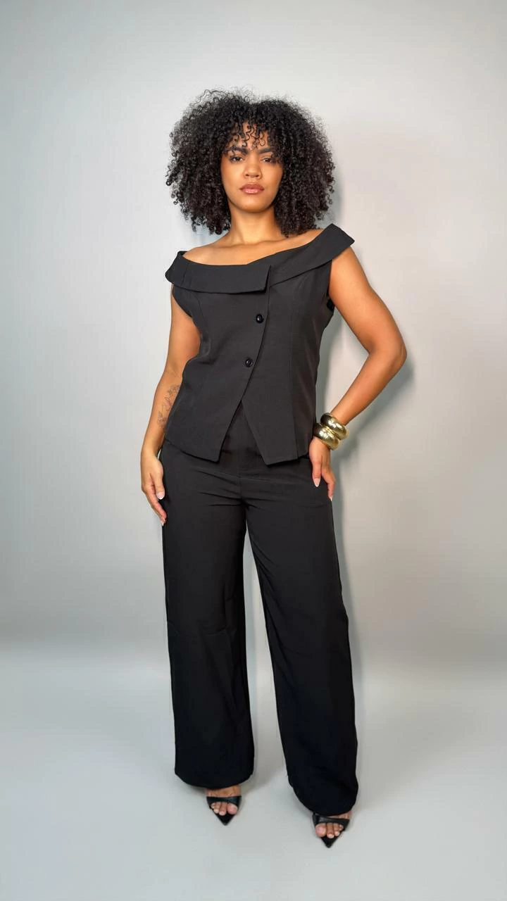 O Conjunto Daiane é a união perfeita entre corte refinado e design moderno, ideal para mulheres que desejam um visual impactante com conforto e estilo,o conjunto é composto por uma blusa assimétrica com detalhe dobrado no ombro, que traz um toque ao look, e uma calça pantalona com caimento fluido e cintura marcada, que alonga a silhueta e valoriza o corpo com leveza.